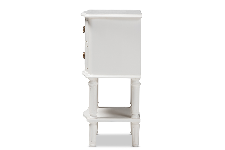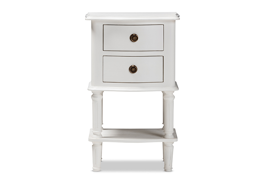The details of this Baxton Studio Audrey Country Cottage Farmhouse White Finished 2-Drawer Nightstand will enhance your Bedroom Furniture and your living space: