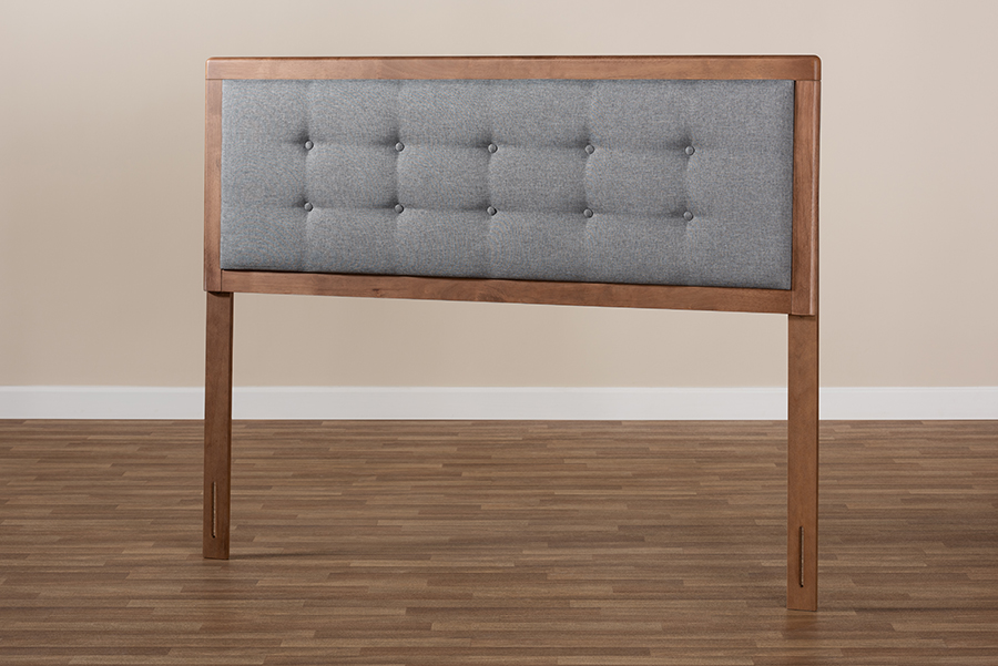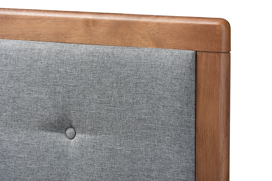 Baxton Studio Sarine Mid-Century Modern Dark Grey Fabric Upholstered Walnut Brown Finished Wood Full Size Headboard