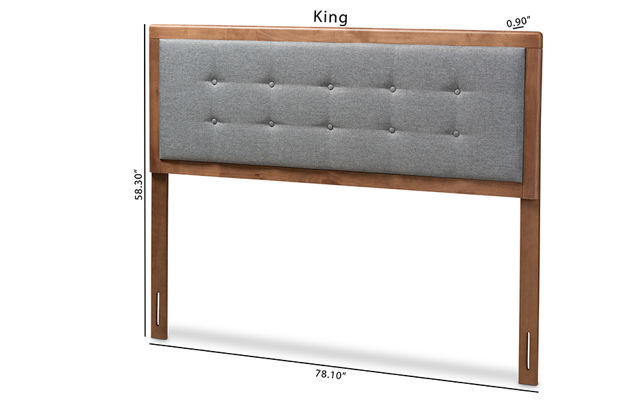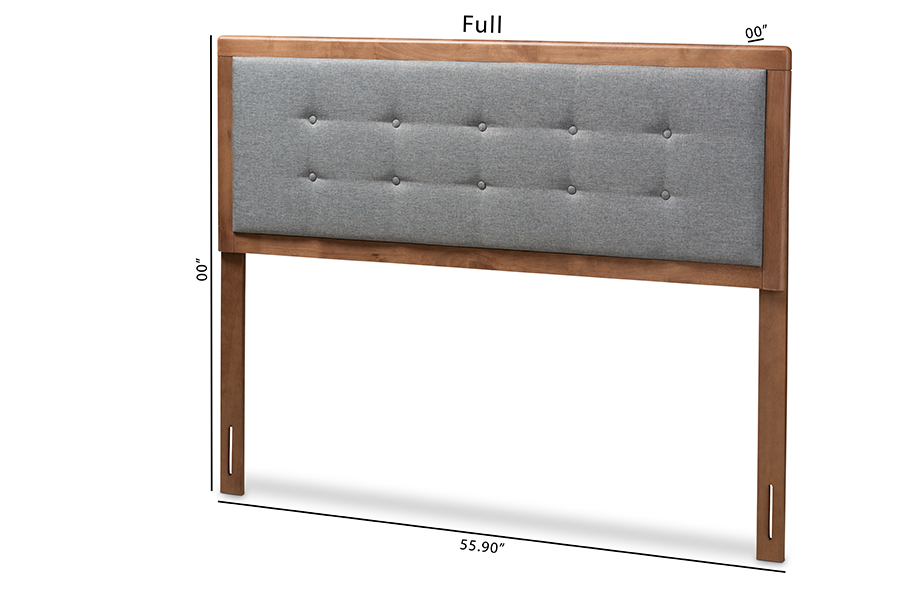The details of this Baxton Studio Sarine Mid-Century Modern Dark Grey Fabric Upholstered Walnut Brown Finished Wood Full Size Headboard will enhance your Bedroom Furniture and your living space: