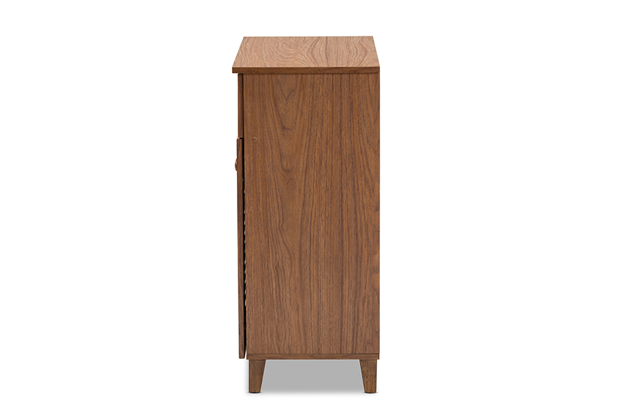 Baxton Studio Coolidge Modern and Contemporary Walnut Finished 4-Shelf Wood Shoe Storage Cabinet with Drawer