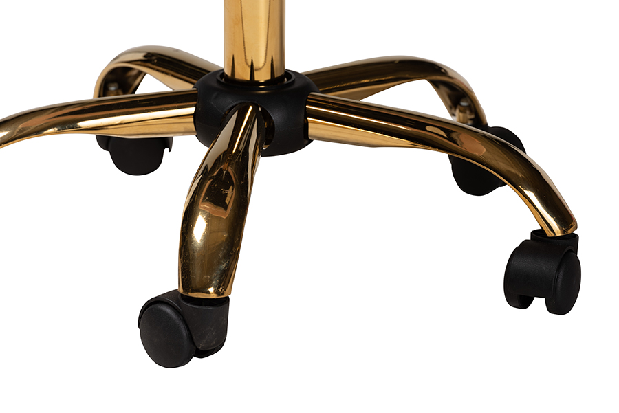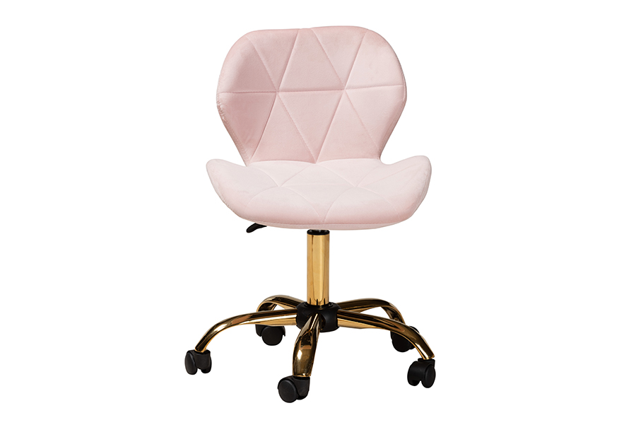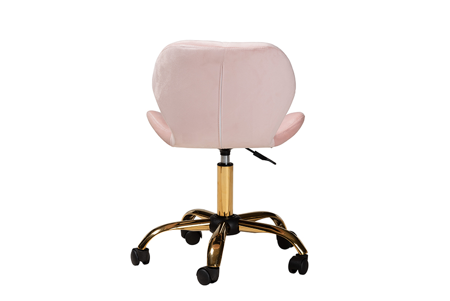 The details of this Baxton Studio Savara Contemporary Glam and Luxe Blush Pink Velvet Fabric and Gold Metal Swivel Office Chair will enhance your Home Office Furniture and your living space: