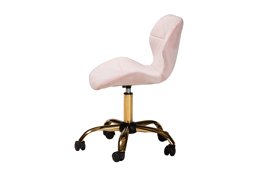 Baxton Studio Savara Contemporary Glam and Luxe Blush Pink Velvet Fabric and Gold Metal Swivel Office Chair
