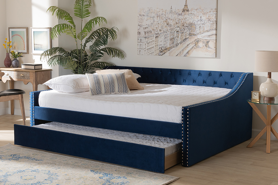 Baxton Studio Raphael Modern and Contemporary Navy Blue Velvet Fabric Upholstered Full Size Daybed with Trundle