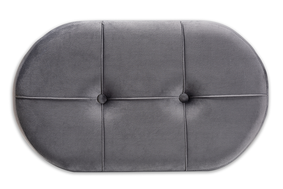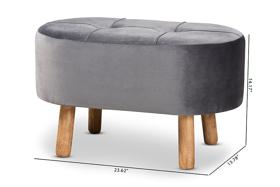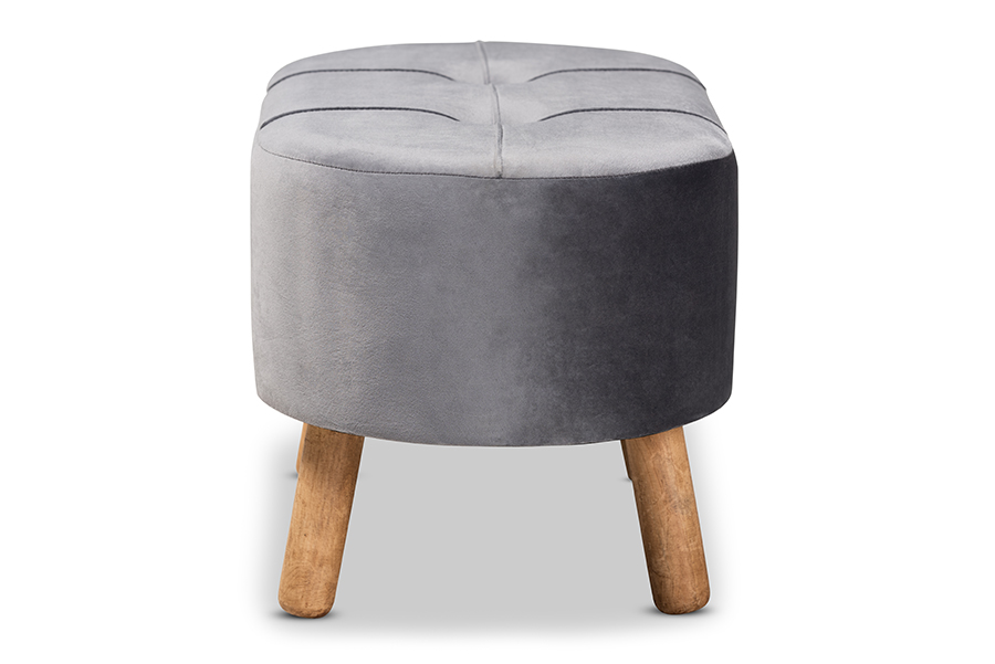 Baxton Studio Simone Mid-Century Modern Grey Velvet Fabric Upholstered Wood Ottoman