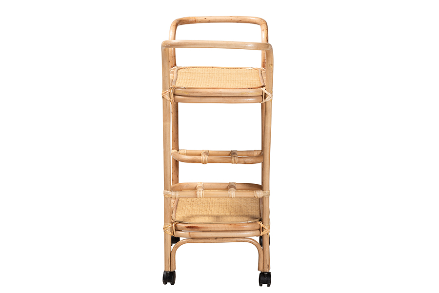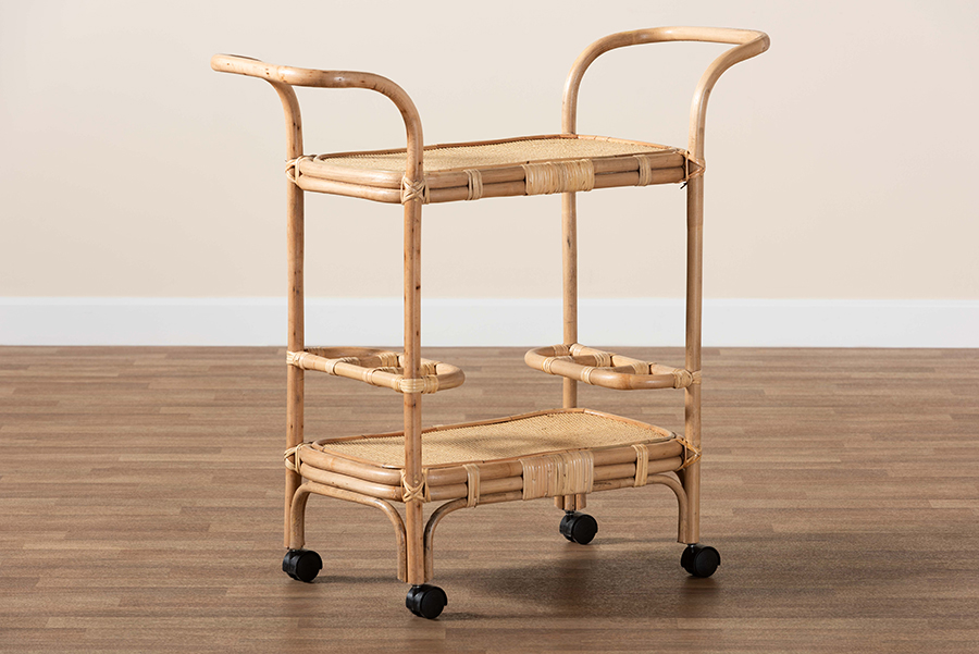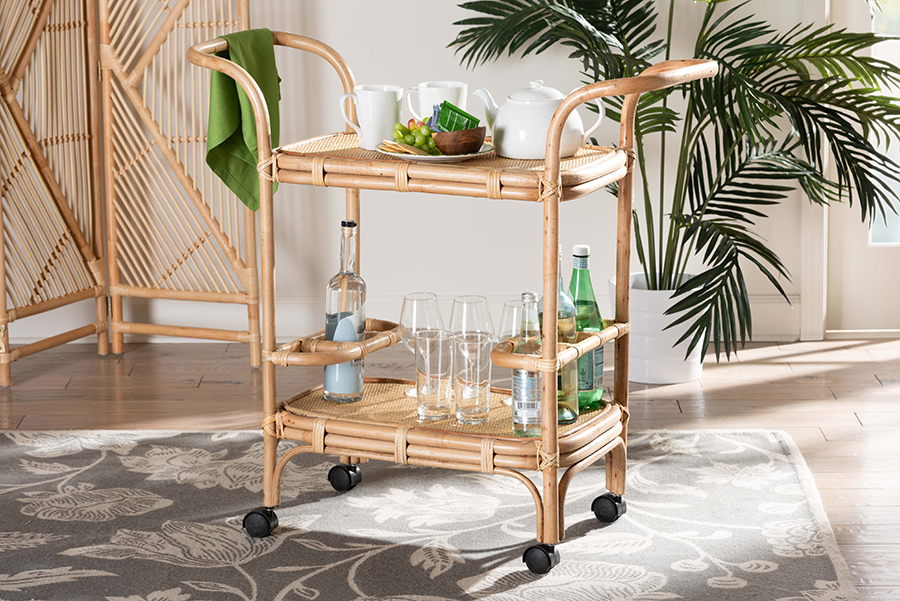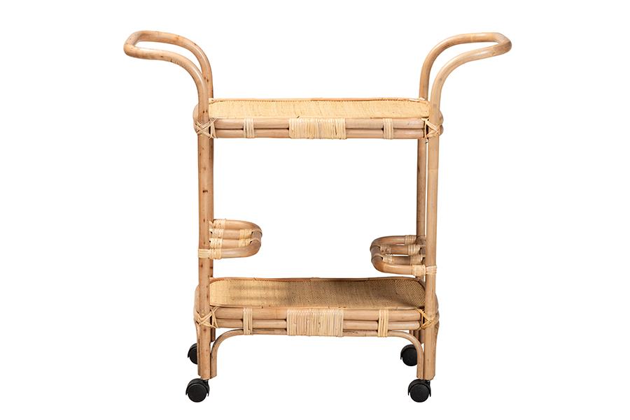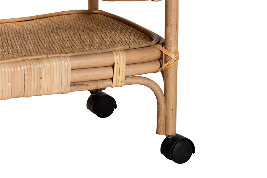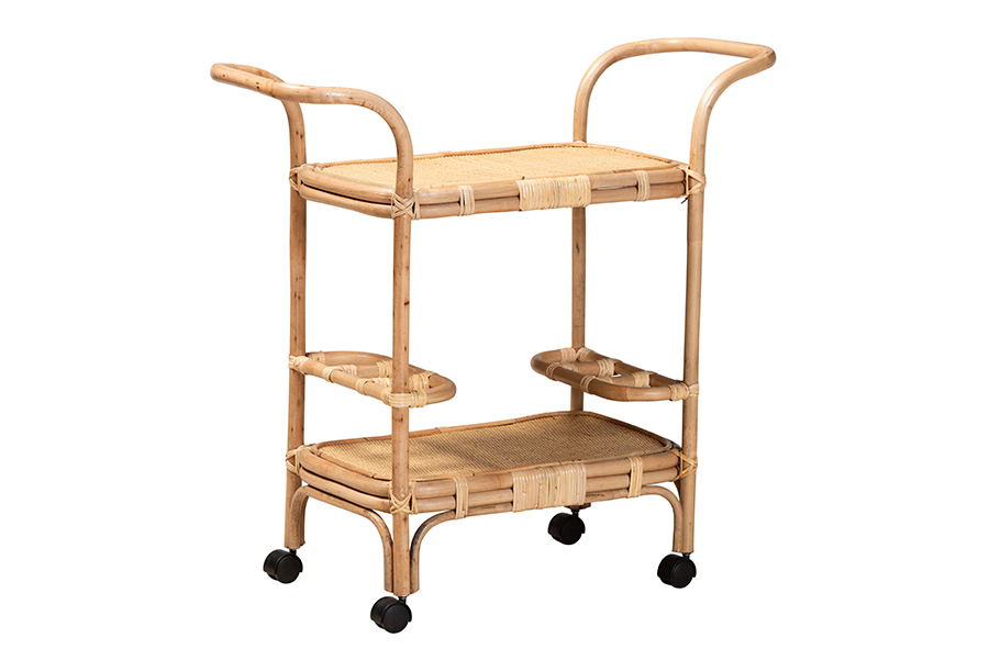 bali & pari Hadia Modern Bohemian Natural Brown Rattan Wine Cart