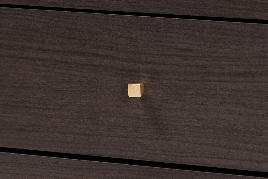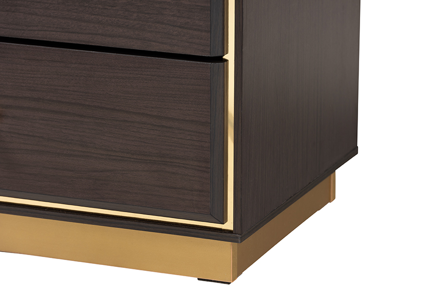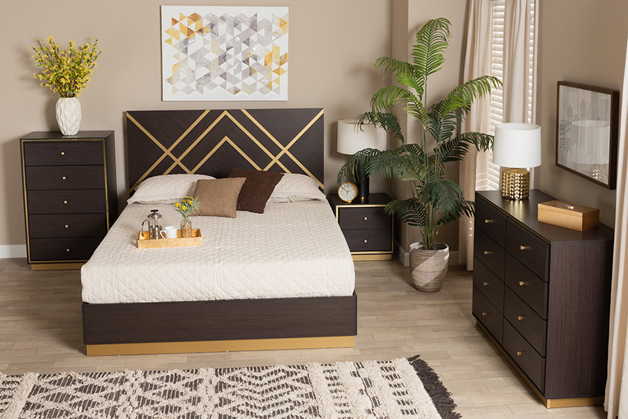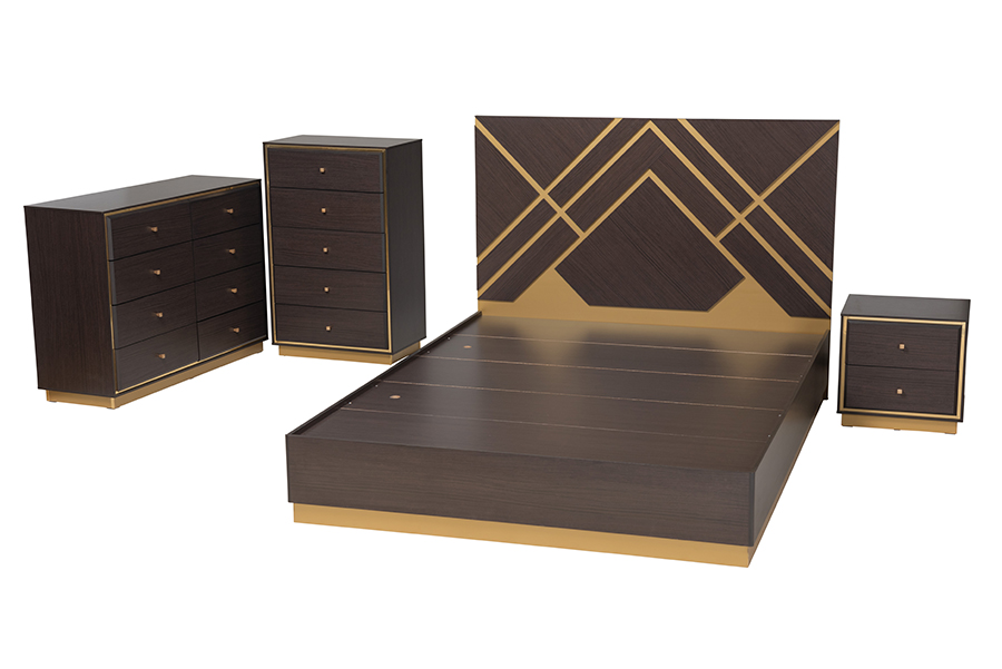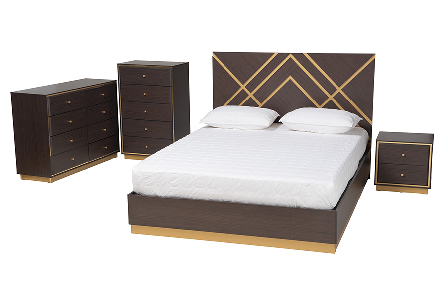 Baxton Studio Arcelia Contemporary Glam and Luxe Two-Tone Dark Brown and Gold Finished Wood Queen Size 4-Piece Bedroom Set with Chest