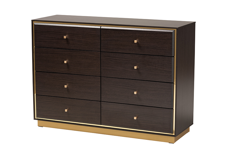 The details of this Baxton Studio Arcelia Contemporary Glam and Luxe Two-Tone Dark Brown and Gold Finished Wood Queen Size 4-Piece Bedroom Set with Chest will enhance your Bedroom Furniture and your living space: