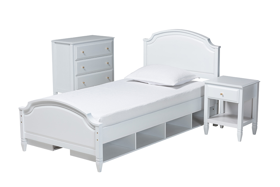 Baxton Studio Elise Classic and Transitional White Finished Wood Twin Size 3-Piece Bedroom Set