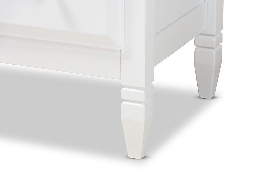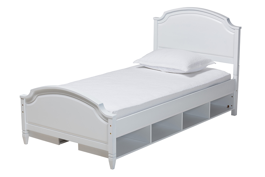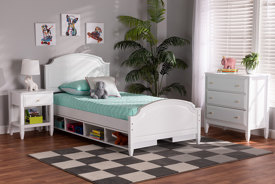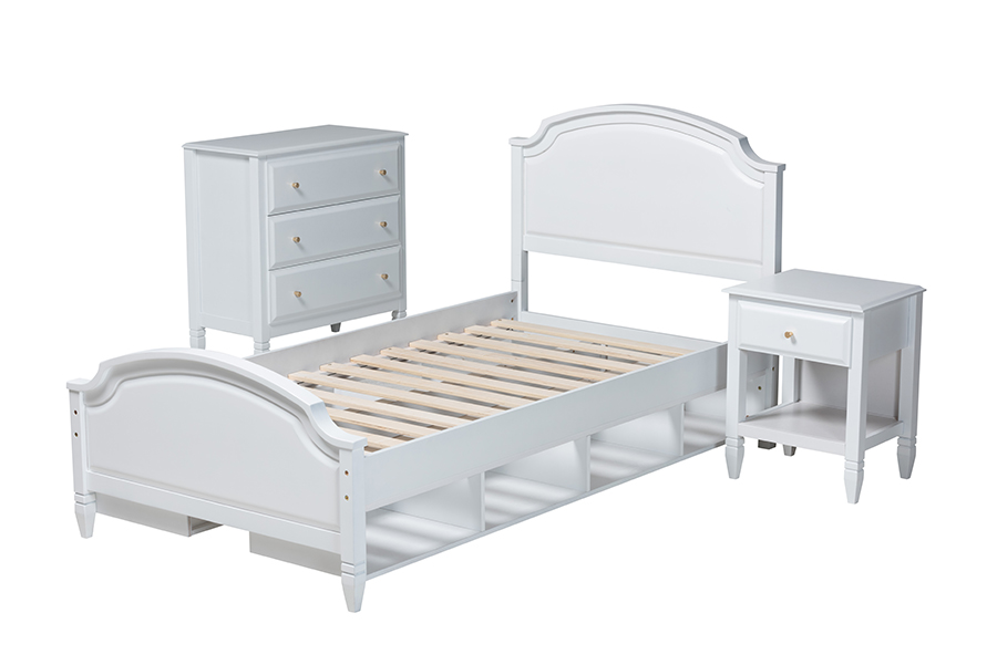 The details of this Baxton Studio Elise Classic and Transitional White Finished Wood Twin Size 3-Piece Bedroom Set will enhance your Bedroom Furniture and your living space: