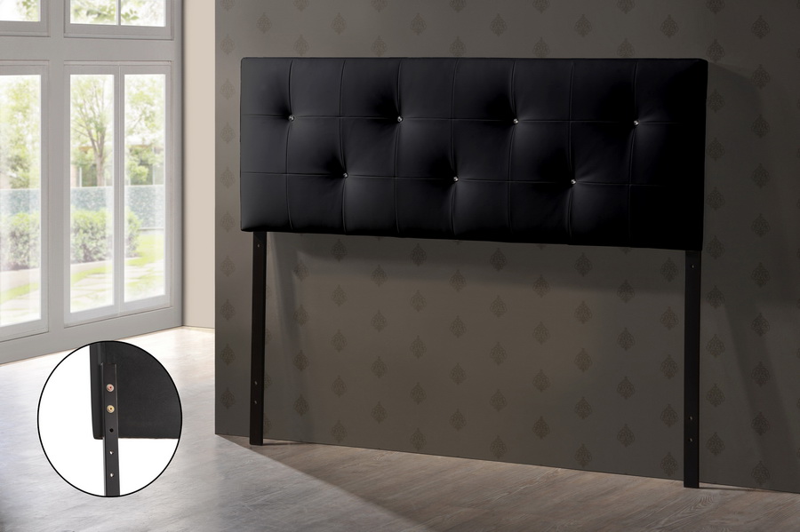 The details of this Baxton Studio Dalini Modern and Contemporary Full Black Faux Leather Headboard with Faux Crystal Buttons will enhance your Bedroom Furniture and your living space:
