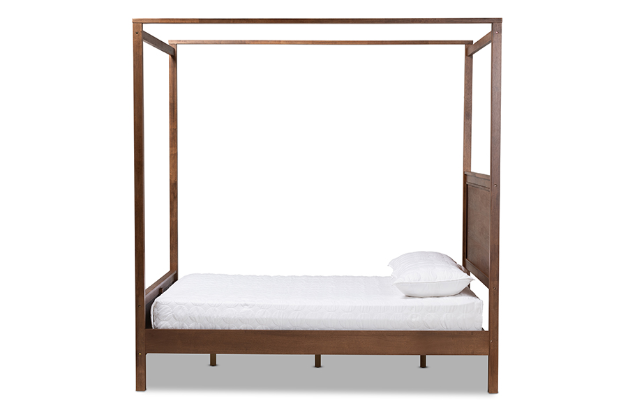 The details of this Baxton Studio Veronica Modern and Contemporary Walnut Brown Finished Wood Queen Size Platform Canopy Bed will enhance your Bedroom Furniture and your living space: