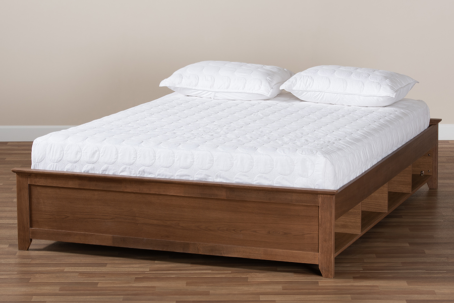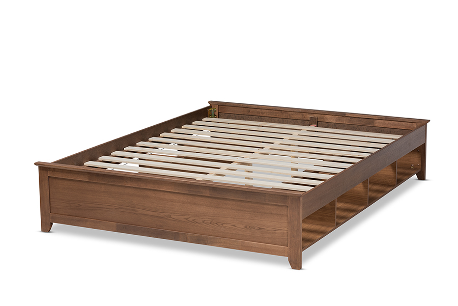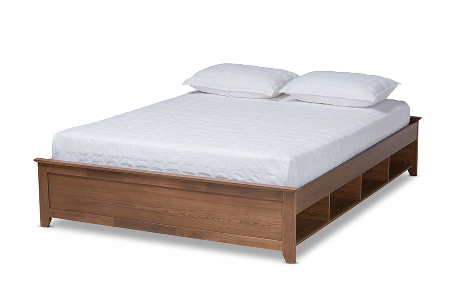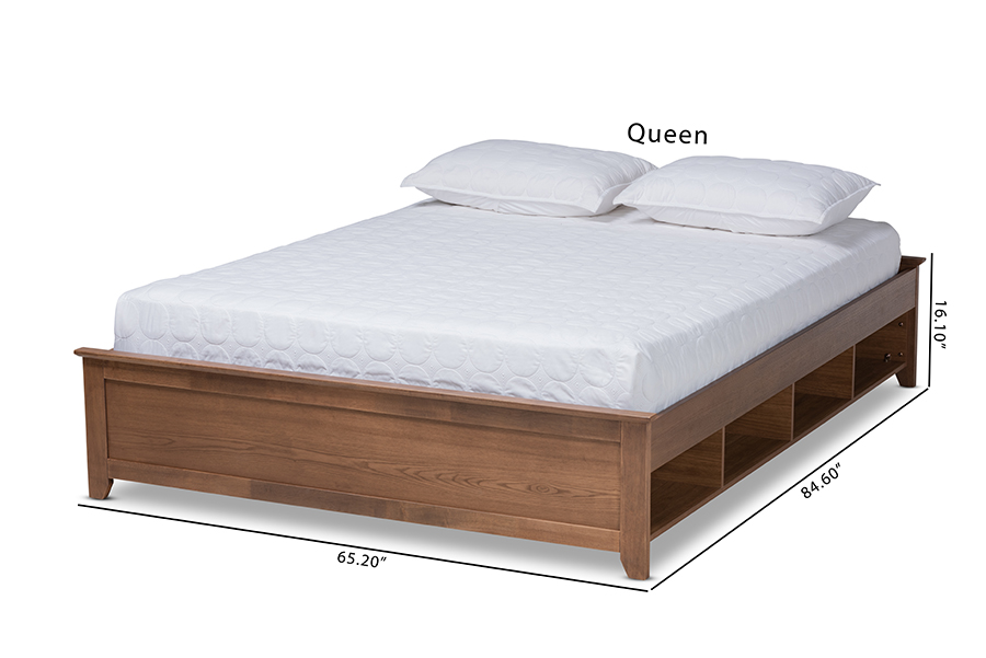 The details of this Baxton Studio Anders Traditional and Rustic Ash Walnut Brown Finished Wood Full Size Platform Storage Bed Frame with Built-In Shelves will enhance your Bedroom Furniture and your living space: