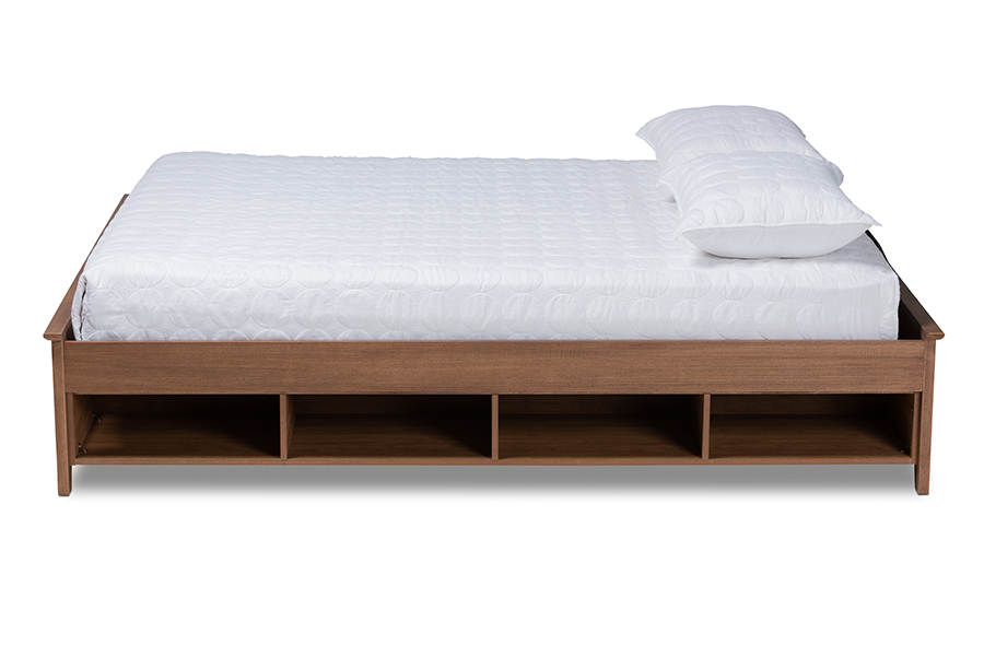 Baxton Studio Anders Traditional and Rustic Ash Walnut Brown Finished Wood Full Size Platform Storage Bed Frame with Built-In Shelves
