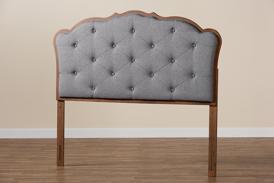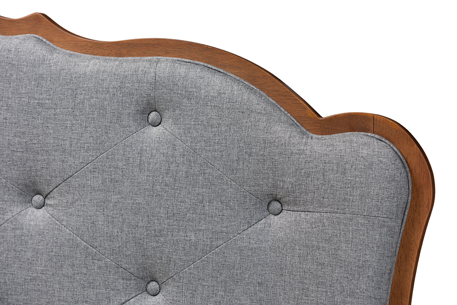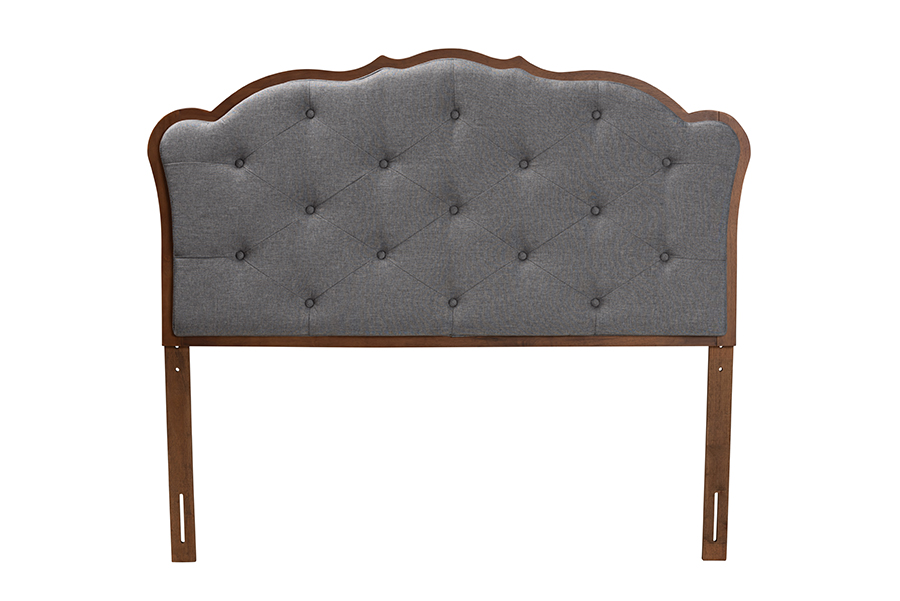 Baxton Studio Leandra Classic and Traditional Grey Fabric and Walnut Brown Finished Wood Queen Size Headboard
