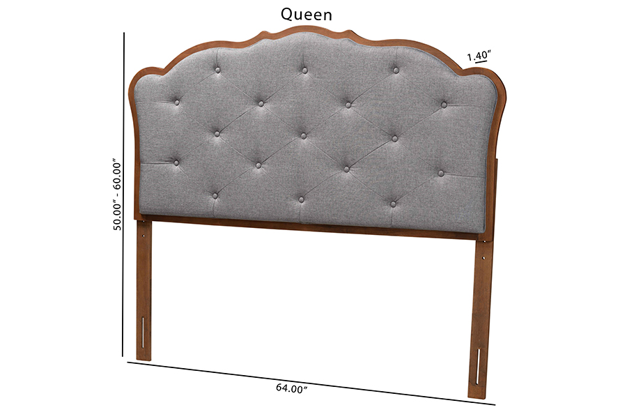 The details of this Baxton Studio Leandra Classic and Traditional Grey Fabric and Walnut Brown Finished Wood Queen Size Headboard will enhance your Bedroom Furniture and your living space: