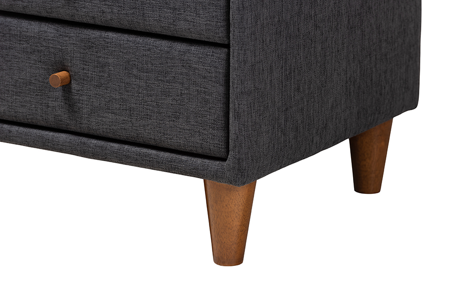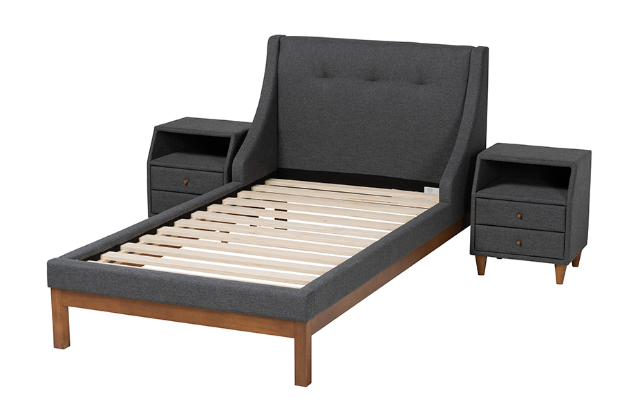 The details of this Baxton Studio Louvain Mid-Century Modern Transitional Dark Grey Fabric Upholstered Twin Size 3-Piece Bedroom Set will enhance your Bedroom Furniture and your living space:
