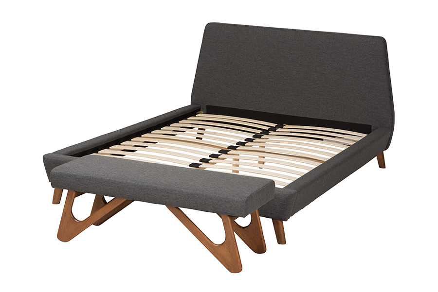 The details of this Baxton Studio Sinclaire Mid-Century Modern Transitional Dark Grey Fabric Upholstered Queen Size 2-Piece Bedroom Set will enhance your Bedroom Furniture and your living space: