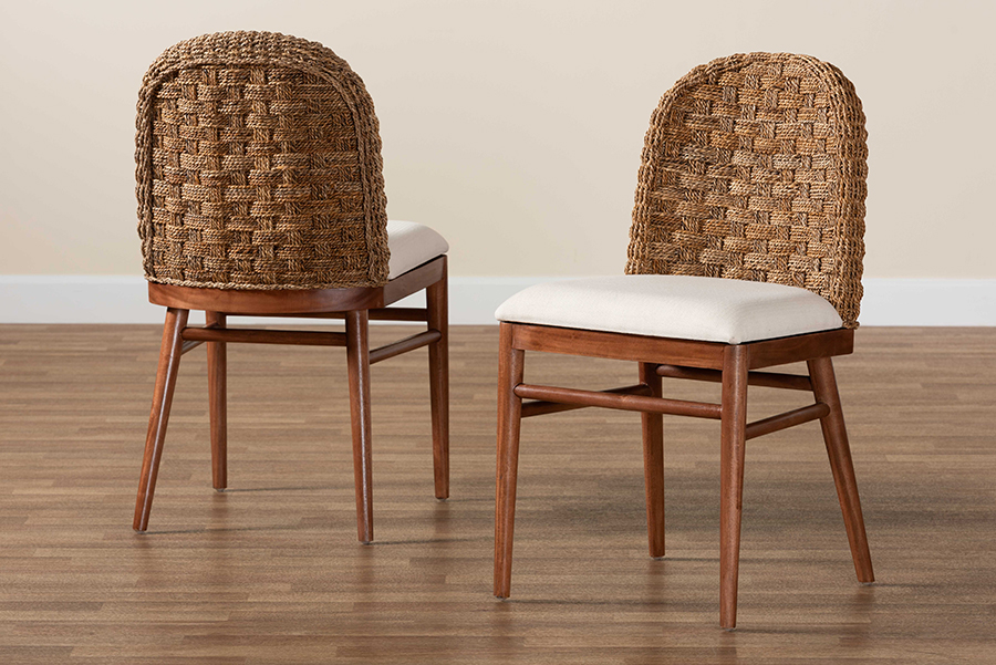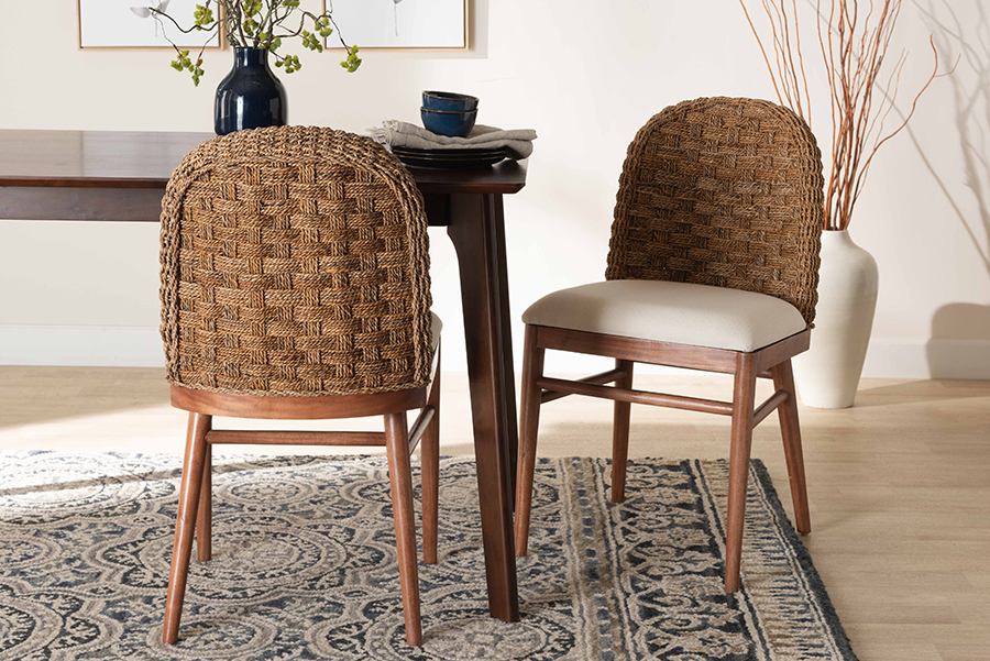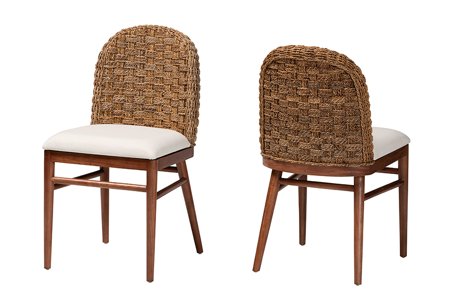 The details of this bali & pari Denver Modern Bohemian Walnut Brown Finished Acacia Wood and Seagrass 2-Piece Dining Chair Set will enhance your Dining Room and your living space: