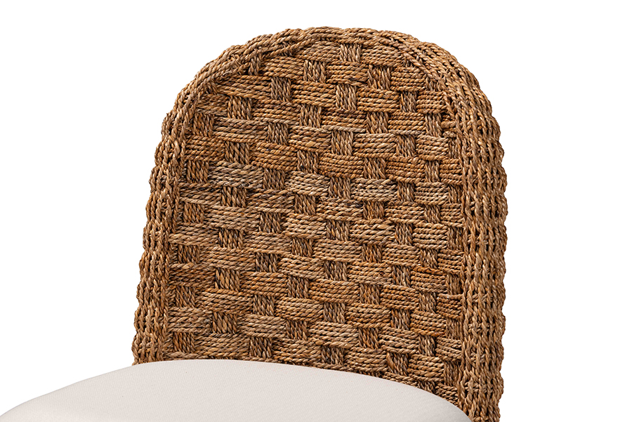 Grant an exotic temperament to your space with the stunning Denver dining chair. Made in Indonesia, this bohemian piece consists of a sturdy acacia wood base ornamented with a woven seagrass backrest. The seat is padded with plush layers of foam and upholstered in sumptuous fabric for cozy comfort while the rounded backrest offers a smooth embrace. The Denver requires assembly and utilizes angled, tapered legs for excellent stability and support in classic design. Marrying rustic flair with chic leisure, the Denver dining chair transforms the feel of any occasion.