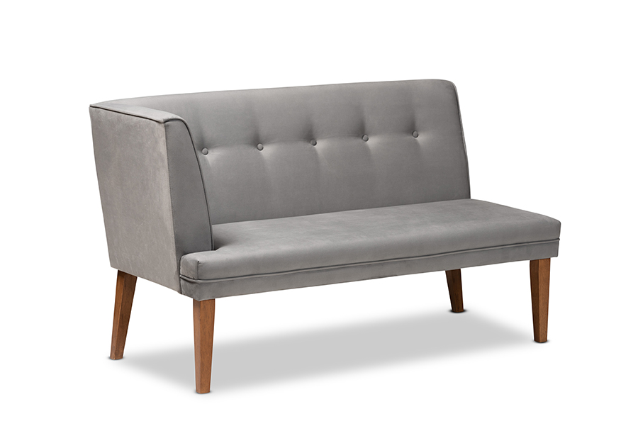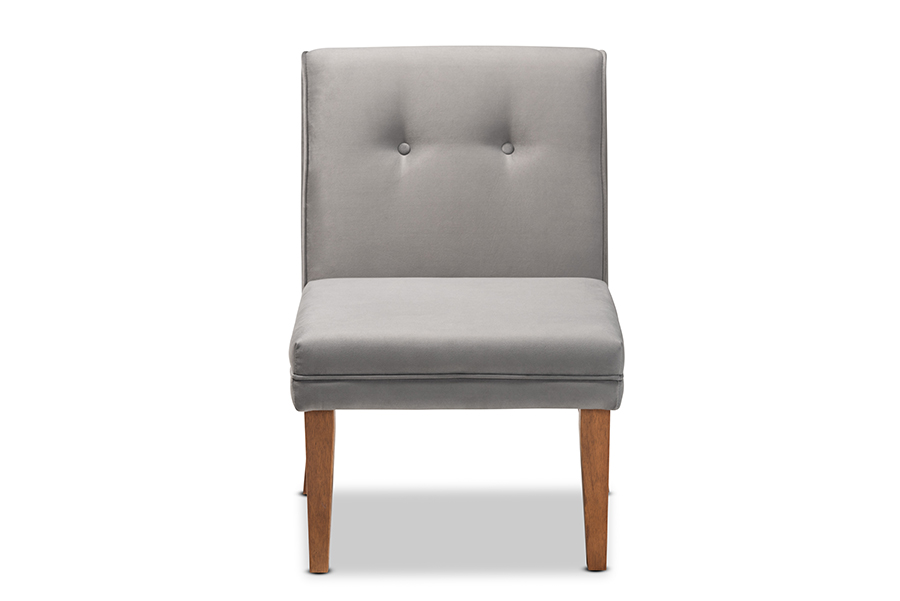The details of this Baxton Studio Stewart Mid-Century Modern Grey Velvet Upholstered and Walnut Brown Finished Wood 5-Piece Dining Set will enhance your Dining Room and your living space:
