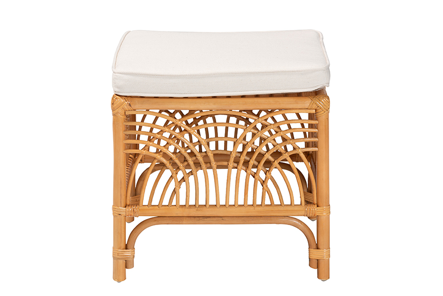 bali & pari Materra Modern bohemian Natural Brown Rattan Footstool
