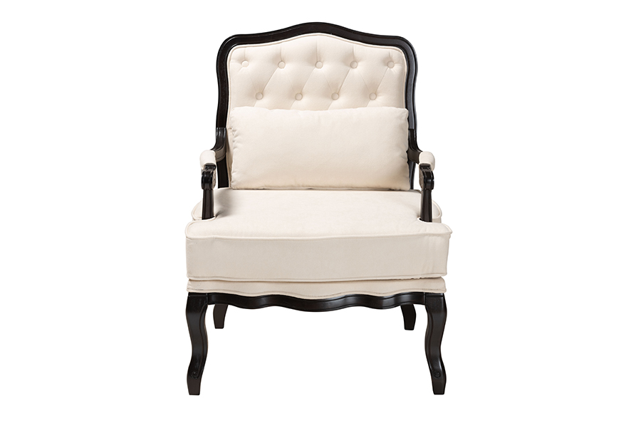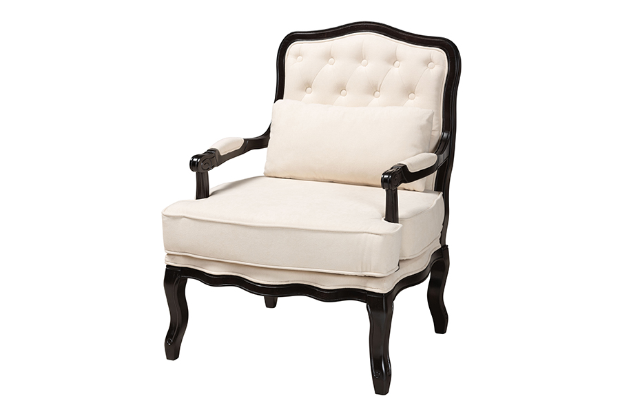 The details of this Baxton Studio Dion Traditional French Cream Fabric and Wenge Brown Finished Wood Accent Chair will enhance your Living Room Furniture and your living space: