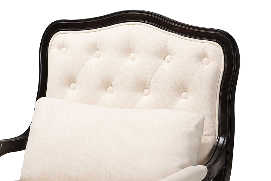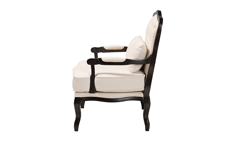 Baxton Studio Dion Traditional French Cream Fabric and Wenge Brown Finished Wood Accent Chair
