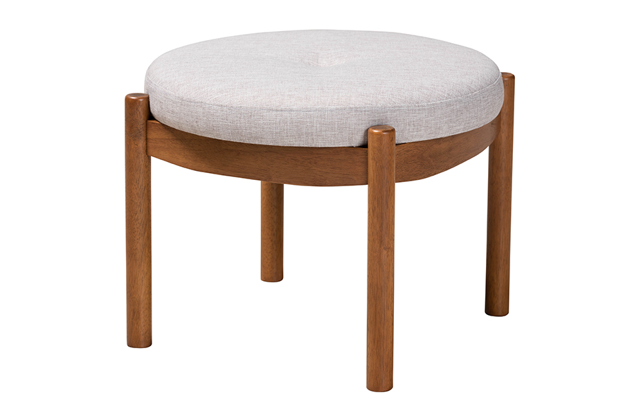 Baxton Studio Iliana Japandi Greyish Beige Fabric and Walnut Brown Finished Wood Ottoman Footstool