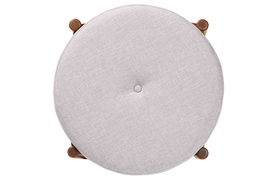 Take a closer look at the Baxton Studio Iliana Japandi Greyish Beige Fabric and Walnut Brown Finished Wood Ottoman Footstool