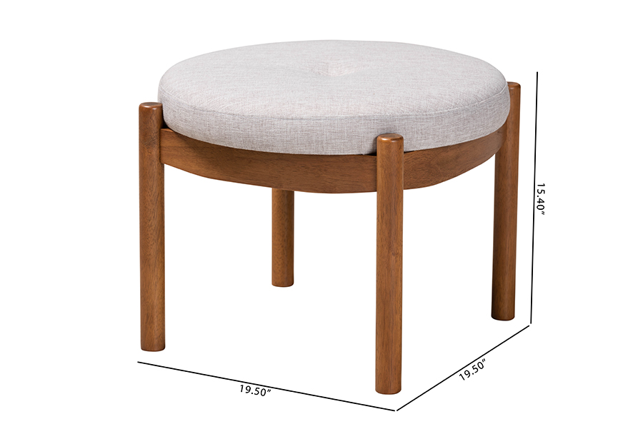 The details of this Baxton Studio Iliana Japandi Greyish Beige Fabric and Walnut Brown Finished Wood Ottoman Footstool will enhance your Living Room Furniture and your living space:
