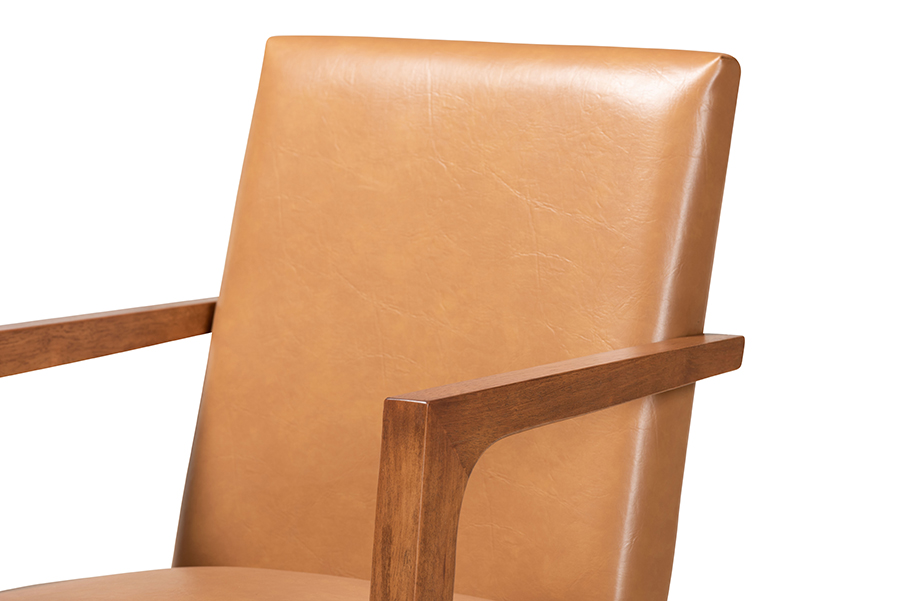 The details of this Baxton Studio Andrea Mid-Century Modern Tan Faux Leather Upholstered and Walnut Brown Finished Wood 2-Piece Armchair Set will enhance your Living Room Furniture and your living space: