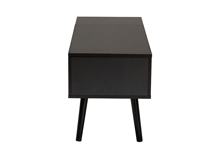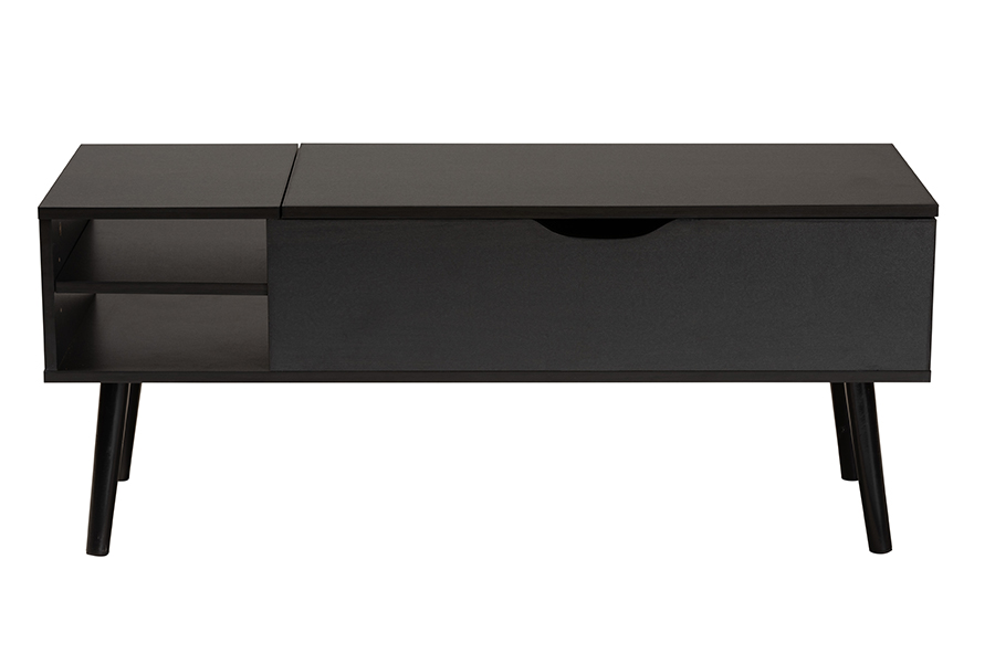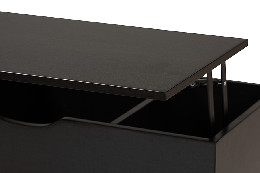 The details of this Baxton Studio Roden Modern Two-Tone Black and Espresso Brown Finished Wood Coffee Table with Lift-Top Storage Compartment will enhance your Living Room Furniture and your living space: