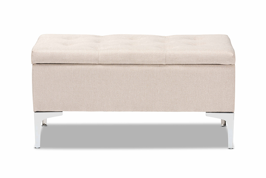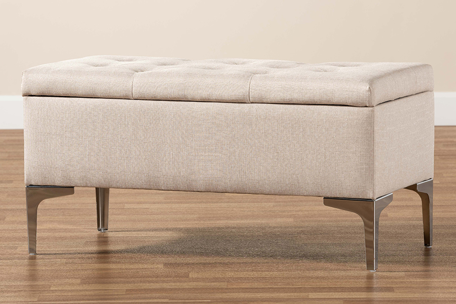 Baxton Studio Mabel Modern and Contemporary Transitional Beige Fabric Upholstered and Silver Finished Metal Storage Ottoman
