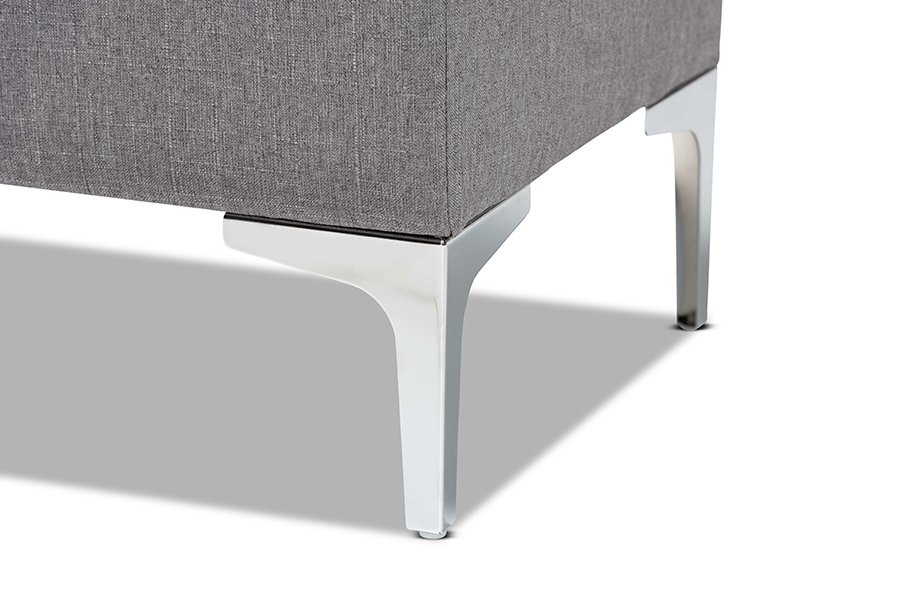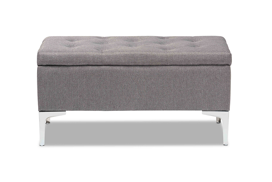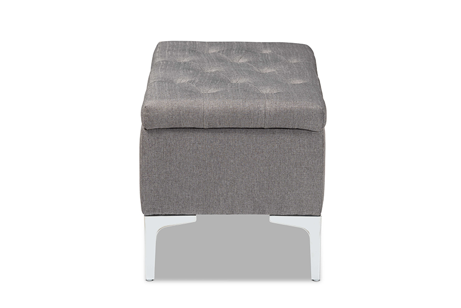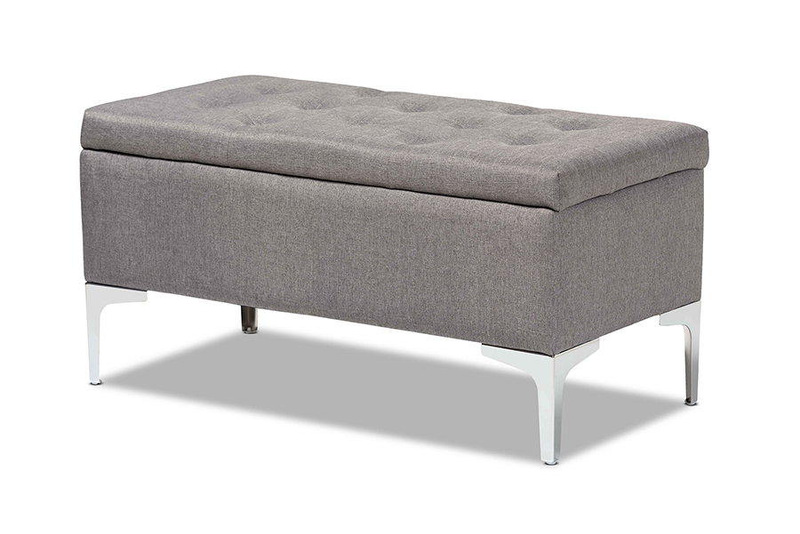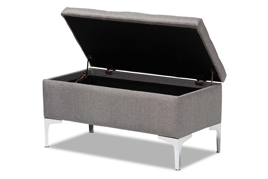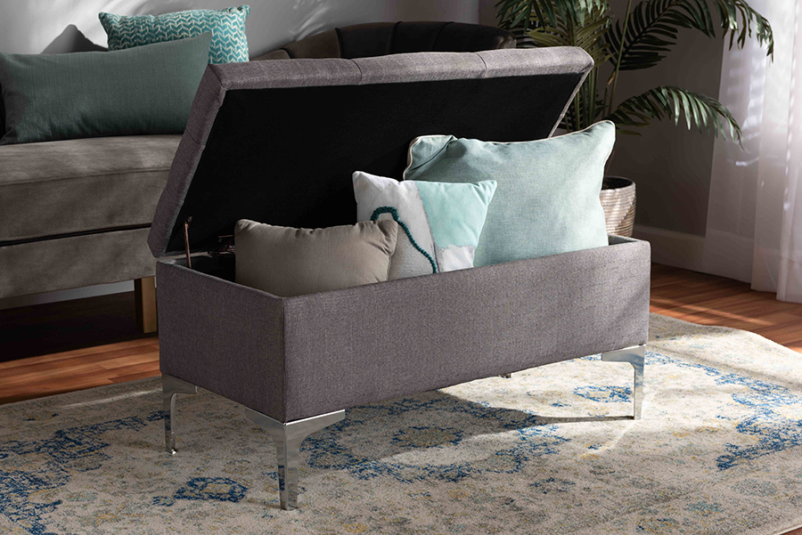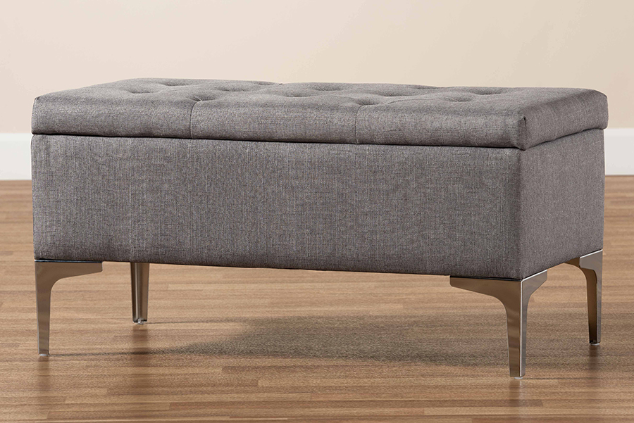 Baxton Studio Mabel Modern and Contemporary Transitional Grey Fabric Upholstered and Silver Finished Metal Storage Ottoman