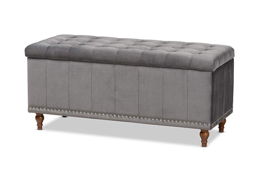 Baxton Studio Kaylee Modern and Contemporary Grey Velvet Fabric Upholstered Button-Tufted Storage Ottoman Bench