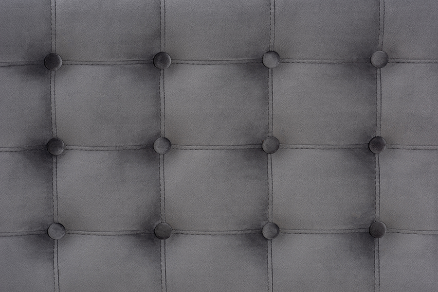 The details of this Baxton Studio Kaylee Modern and Contemporary Grey Velvet Fabric Upholstered Button-Tufted Storage Ottoman Bench will enhance your Living Room Furniture and your living space: