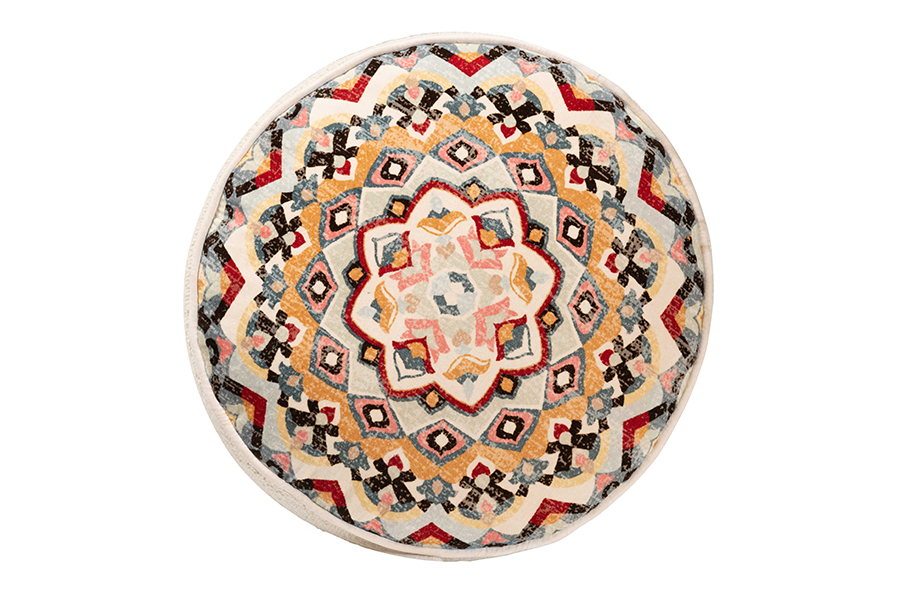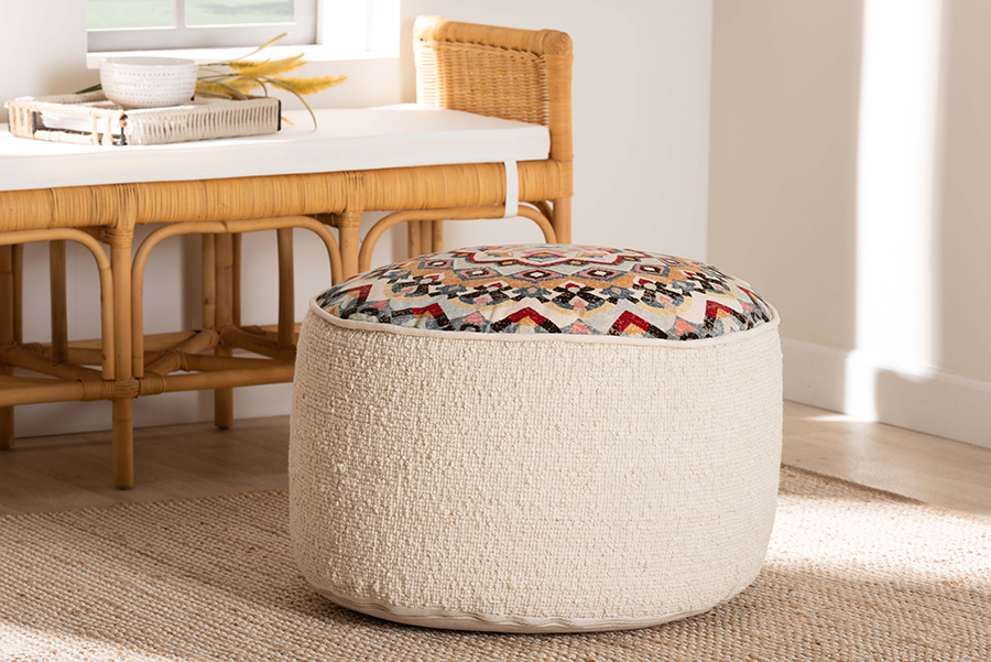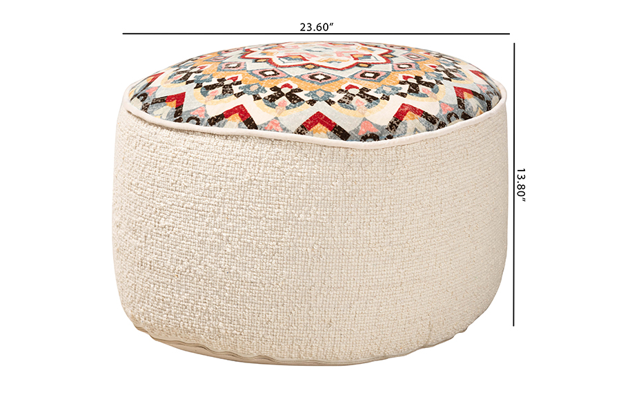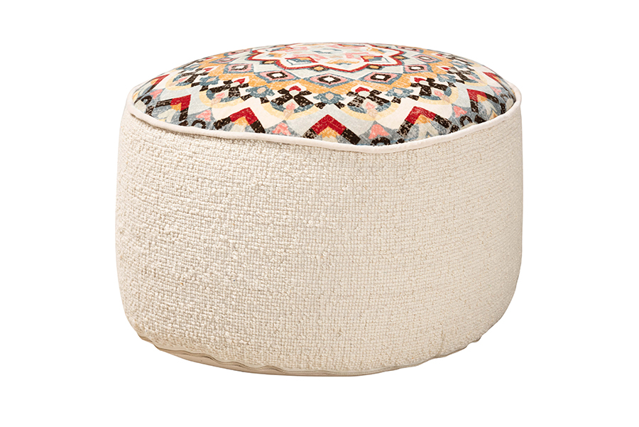 Baxton Studio Durrus Vintage Cream and Multicolor Fabric Ottoman Pouf